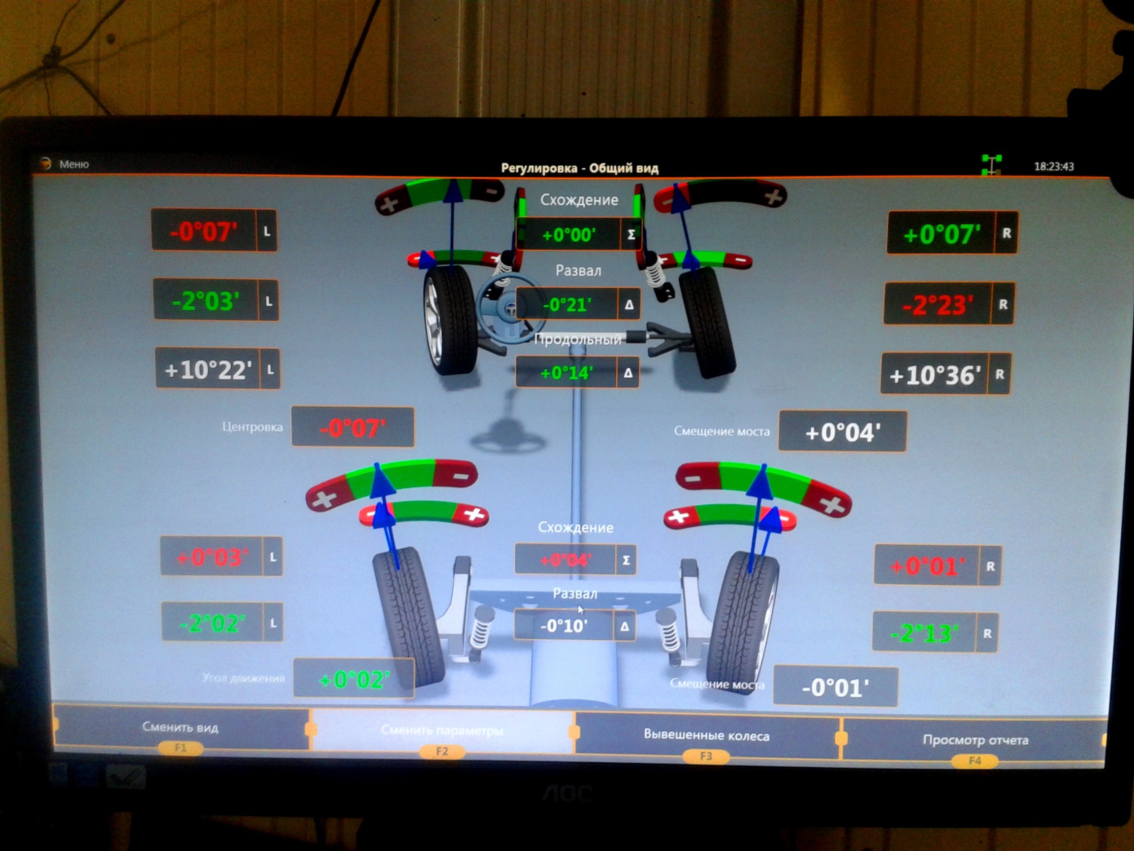 | Регулировка схождения и развала передней оси + схождения задней оси | 135 бел. руб. | 81 бел. руб. |